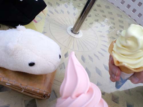 ベゴニアの花で作ったソフトクリーム!珍しくっていただきました。