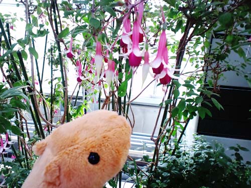 ホワイトさんはベゴニアソフトを食べようと台に乗っかりくくっと顔をのばしてます。