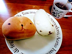 上手く撮れなかったけど実際のカピバラさんパンもあります。
