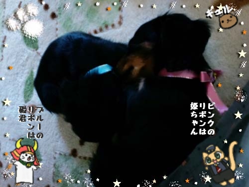 リボンのピンクは姫ちゃん、ブルーのリボンは殿君。
