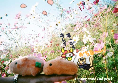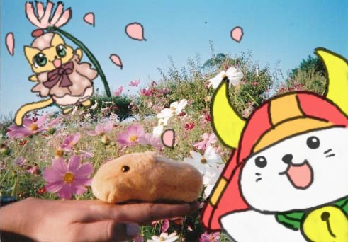 コスモスのお花畑で遊んでいた3匹。