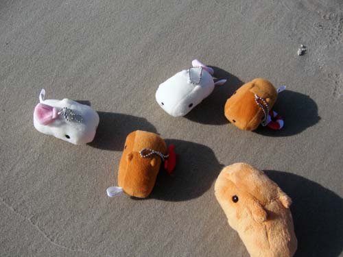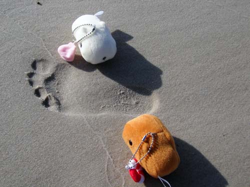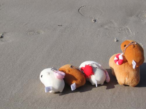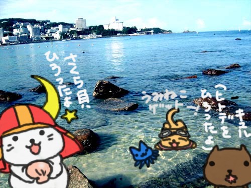 ひこにゃんは、さくら貝をみつけて大事に持っています。