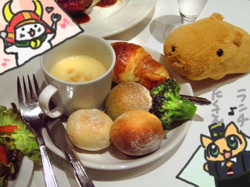 ミニテンネコとミニひこにゃんは食べまくる気まんまんなのでした☆